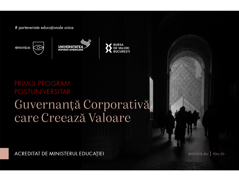 Envisia și Universitatea Româno-Americană lansează a 11-a cohortă a programului postuniversitar „Guvernanță Corporativă care Creează Valoare”, cu începere pe 16 octombrie 2025.