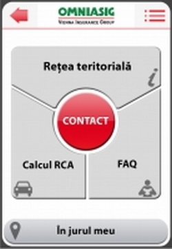 In rubrica "Retea teritoriala" se regasesc datele de contact ale sucursalelor, agentiilor si punctelor de lucru OMNIASIG din toata tara, inclusiv cu localizarea lor pe harta. De asemenea, cu ajutorul butonului "In jurul meu" utilizatorii pot afla care este cel mai apropiat sediu OMNIASIG de locul in care acestia se afla la momentul cautrii, pe o raza de 500 metri, 5, 25 sau 75 de km. Butonul "Calcul RCA" ofera facilitatea de a obtine rapid o cotatie de pret pentru asigurarea de raspundere civila auto obligatorie, iar accesand rubrica "FAQ" utilizatorii aplicatiei afla raspunsuri la intrebri frecvente, precum: Ce fac in caz de dauna? De unde pot obtine formularul de constatare amiabila? si altele.