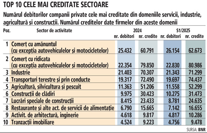 Click aici pentru vizualiza articolul integral articolul - "Pe cine finanţează băncile: comerţ şi iar comerţ, pe podium în topul celor mai bancarizate firme".