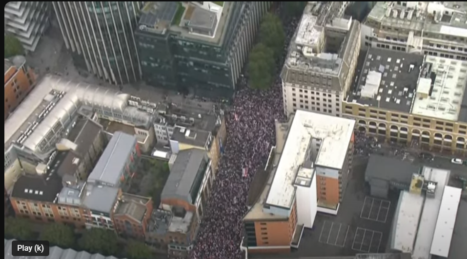 Circa 100.000 de manifestanți, potrivit poliției, au defilat sâmbătă prin centrul Londrei la un miting organizat de activistul de extremă dreapta Stephen Yaxley-Lennon, cunoscut sub numele de Tommy Robinson. Marșul „Unite the Kingdom” a fost confruntat de o contra-manifestație „Stand Up to Racism”, la care au participat aproximativ 5.000 de persoane, scrie France 24.