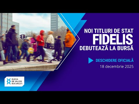 Ministerul Finantelor suna clopotelul bursei pentru listarea unor noi titluri de stat Fidelis - informatie preluata de BaniSiAfaceri.ro de pe canalul YouTube BVB (Bursa de Valori București).